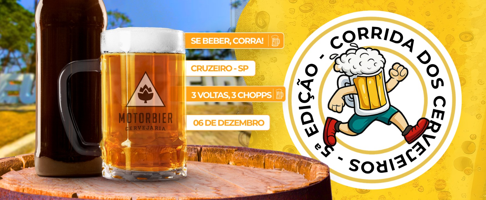- O vencedor deverá consumir 1 chopp de 440 ml antes de correr os 1,3 km finais.