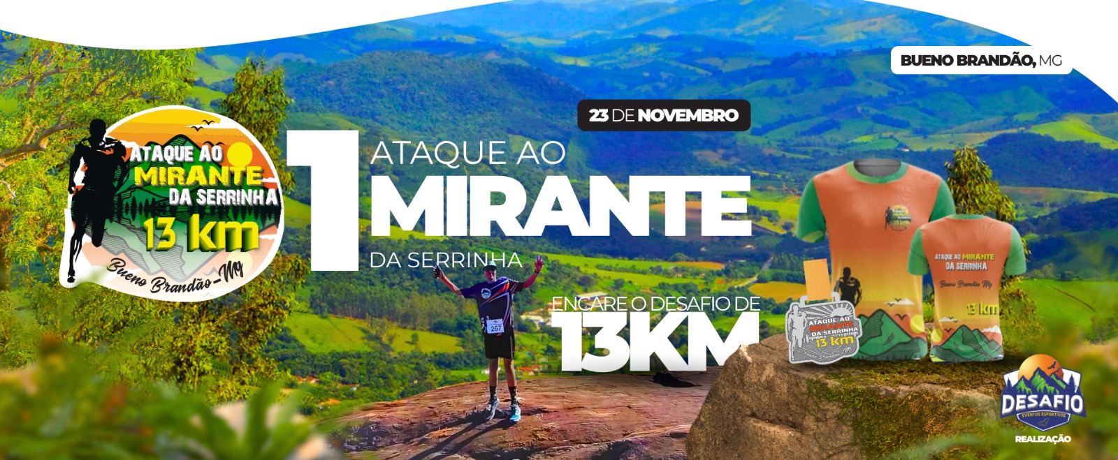 Art. 1º - O Ataque ao Mirante da Serrinha, será realizado em percurso marcado e muito bem sinalizado, iniciando na praça central de Bueno Brandão, seguindo pela sinalização específica da prova por estrada rural até o topo do mirante e posterior retorno a praça.