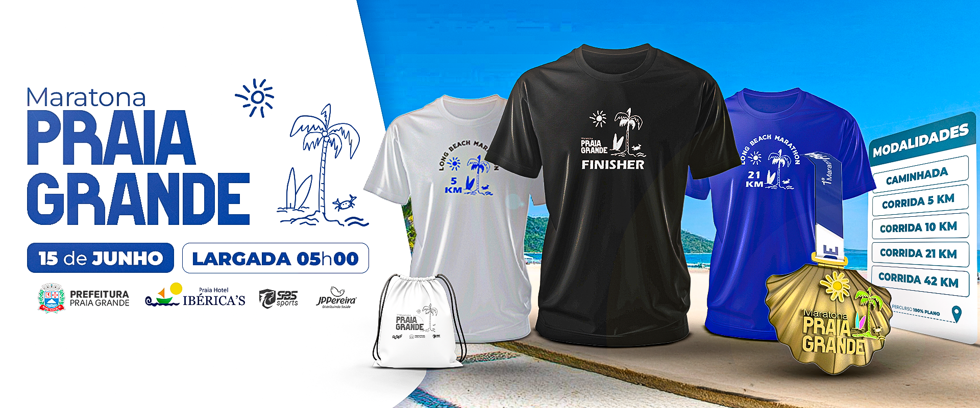 1.1. A Prova Pedestre Maratona Internacional PRAIA GRANDE, doravante denominada evento presencial, será realizada, nos dias 15 junho 2025, na cidade de PRAIA GRANDE (SP), sob qualquer que seja a condição climática, com participação de pessoas de ambos os sexos, devidamente inscritas, doravante denominadas ATLETAS.